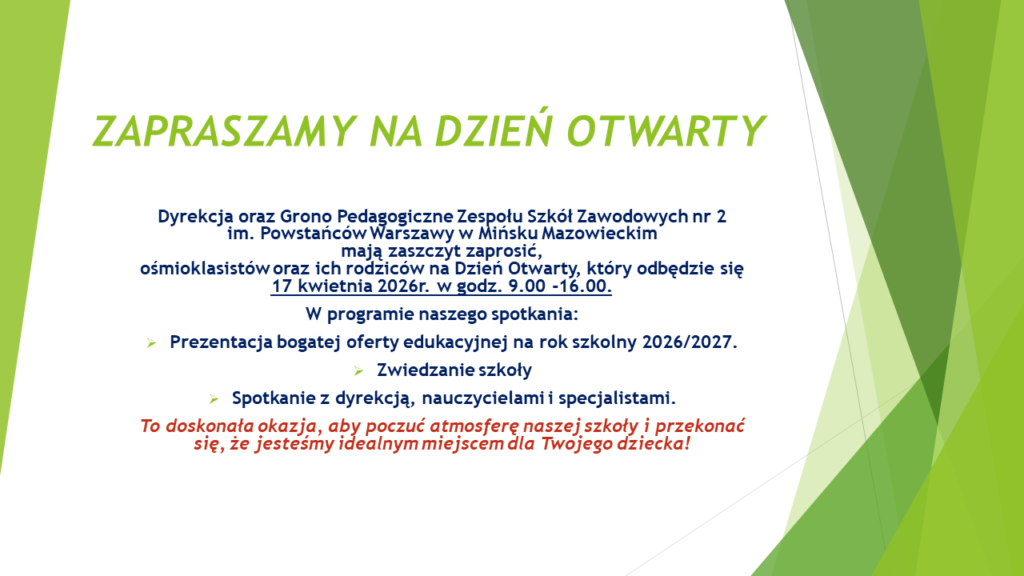 Zespół Szkół Zawodowych nr 2 im. Powstańców Warszawy w Mińsku Mazowieckim oraz...